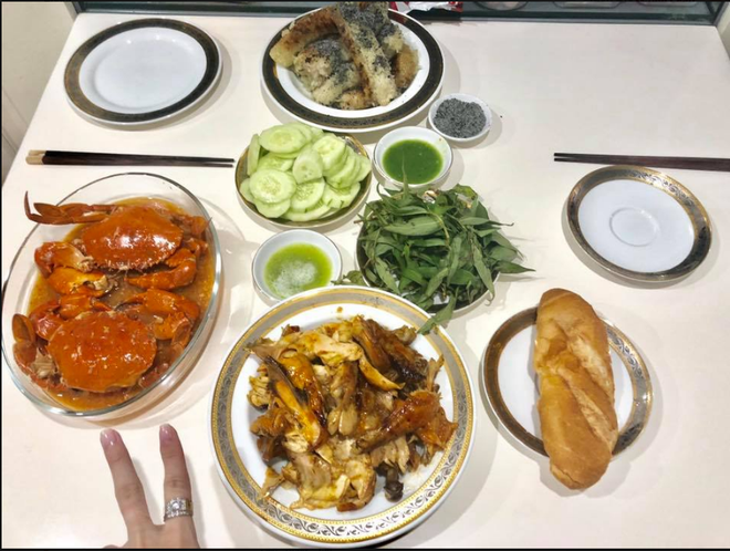 Chị Q.T.D thì cho rằng những mâm cơm này phải 3 - 4 người ăn mới hết. "Nhà mình 3 người mà hôm nào nấu 1 nồi canh, 2 món mặn cũng đều thừa không ăn hết. Mom nấu nhiều như vậy chắc gia đình bình thường phải 4 người ăn mới hết. Bây giờ một ngày cầm 80k ra chợ thiệt sự run tay cho 2 bữa mặn, canh, xào. Thịt heo nay 120k/kg, bò 260k/kg, gà 90k/kg, cá diêu hồng trung bình 40-50k/con, cua đồng, tôm, mực giao động 20-30/lạng. Rau muống, lang, củ, cà chua cũng phải 20k/ ngày. Chưa kể gia vị, gạo nữa".