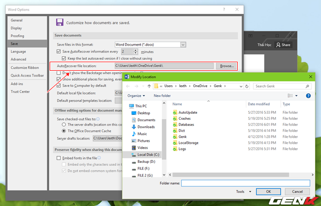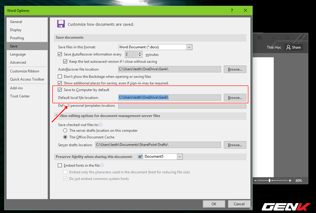 Và cuối cùng, để tận dụng lợi thế của các ứng dụng đám mây đang được cài đặt trên máy tính (như OneDrive chẳng hạn), bạn hãy thiết lập vị trí lưu mặc định cho ứng dụng Office là thư mục đám mây để có thể xem và làm việc trên bất cứ thiết bị nào miễn có kết nối internet.