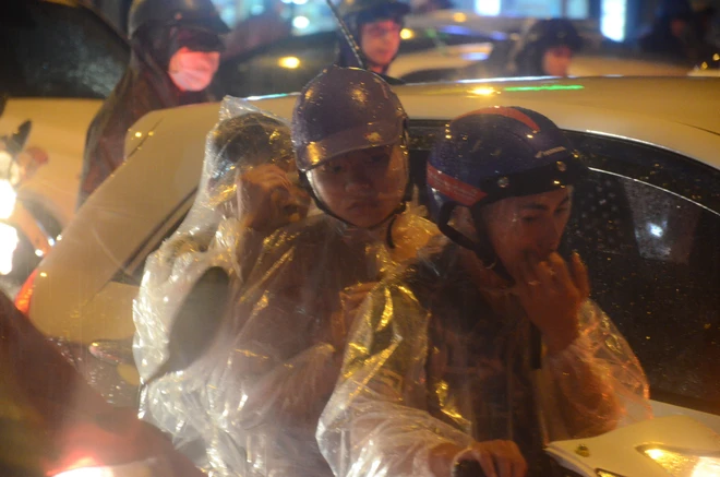 Càng về cuối ngày mưa càng lớn, phương tiện đi lại đông, tầm nhìn hạn chế khiến giao thông đi lại rất khó khăn, vất vả. Ảnh: Ngọc Thắng