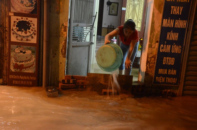 Cũng do mưa lớn nhiều tuyến phố bị ngập sâu trong nước. Ảnh: Ngọc Thắng