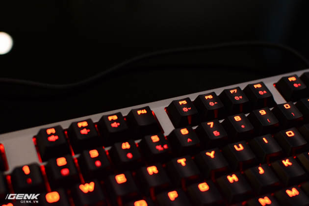 Mẫu phím tôi được trải nghiệm là phiên bản sử dụng Cherry MX Red, một switch bấm "trơn tuột" trong các sản phẩm mà hãng sản xuất của Đức phát triển.
