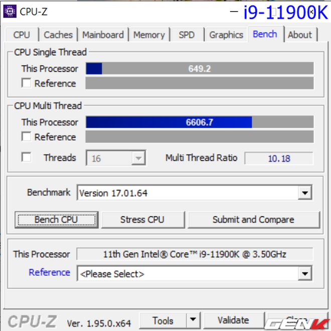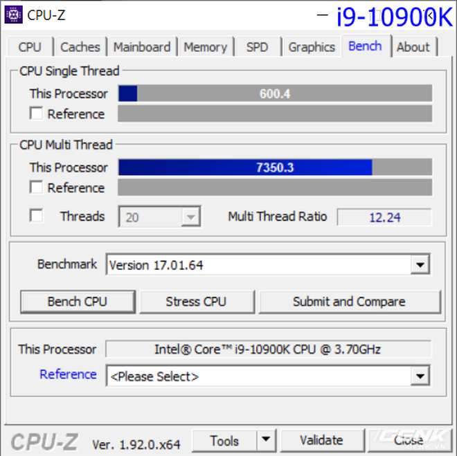 Một công cụ thử nghiệm khác có thể kể đến là CPU-Z và một lần nữa, sự chênh lệch về điểm số cũng tương tự với Cinebench R20 với điểm đơn nhân nhỉnh hơn nhưng vẫn thua về đa nhân.