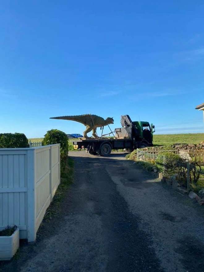 Andre kể: "Khi tôi nhìn vào trang web, tôi nghĩ kích thước của con khủng long này sẽ nằm vừa vặn bên cạnh bồn nước nóng trong vườn nhà và nó sẽ khá thú vị. Mãi cho đến khi các nhân viên vận chuyển từ Channel Seaways nói với tôi rằng nó không vừa với chiếc xe tải của họ thì tôi nghĩ 'trời ơi, nó phải dài khoảng 6 mét'. Sau đó tôi biết rằng nó sẽ không phù hợp với bất cứ nơi nào trong khu vườn rất nhỏ của nhà tôi".