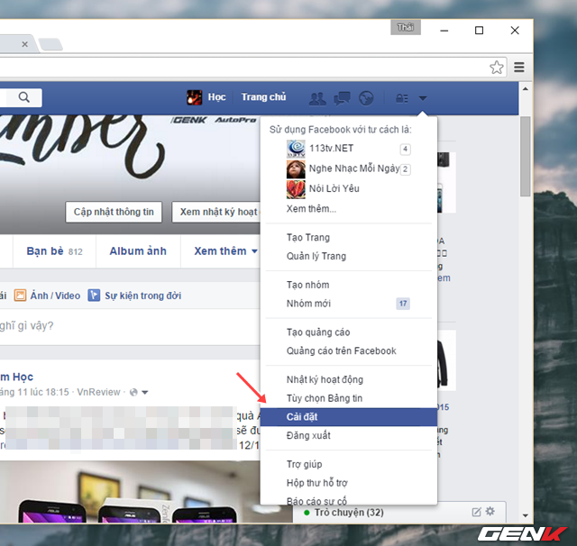 Sau khi đã đăng nhập thành công, bạn hãy truy cập vào "Cài đặt".