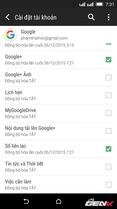 Đồng bộ với tài khoản Google