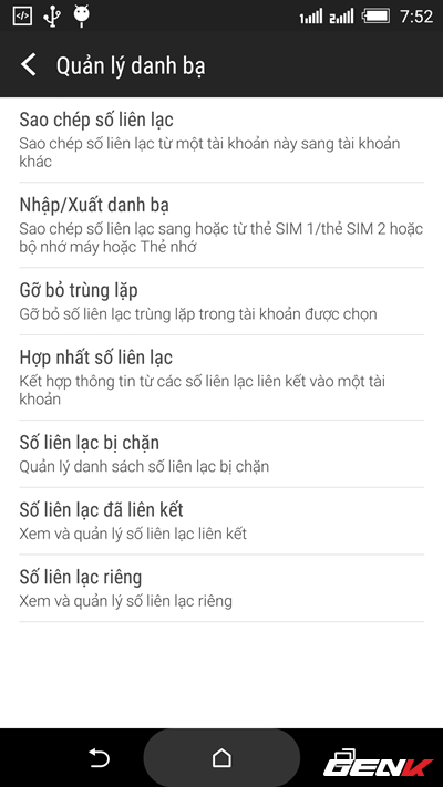 Nếu 2 chiếc smartphone mới và cũ của bạn có hỗ trợ khe cắm thẻ nhớ SD, bạn có thể chuyển danh bạ bằng cách xuất dữ liệu danh bạ từ máy cũ vào thẻ nhớ SD, sau đó cắm thẻ nhớ này vào máy mới và tiến hành khôi phục lại. Cụ thể, bạn hãy truy cập vào Danh bạ > Quản lí danh bạ, sau đó nhấn vào lựa chọn Nhập/xuất danh bạ.