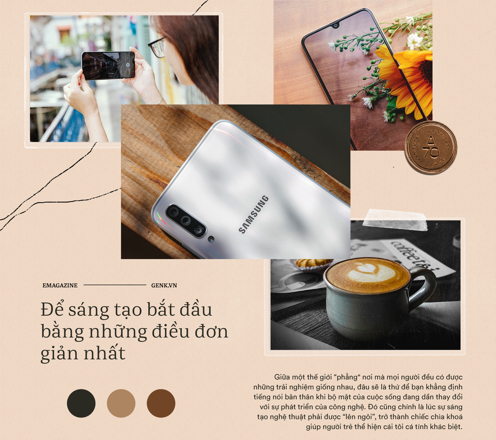 Vì con đường sáng tạo không hề bằng phẳng mà còn đó nhiều cơ hội cũng như thách thức không hề nhỏ để mỗi ngày với chúng ta luôn là sự rèn luyện và trải nghiệm mới lạ. Chính vì vậy, ngay từ những điều đơn giản xung quanh cũng có thể biến thành những ý tưởng toả sáng mang đến cho bạn cảm xúc ngọt ngào của sự thành công. Và trên con đường đó người đồng hành với bạn, không ở đâu xa mà chính là Galaxy A70, công cụ vô cùng hữu ích để bạn có thể vươn lên, cùng theo đuổi những đam mê bất tận.
