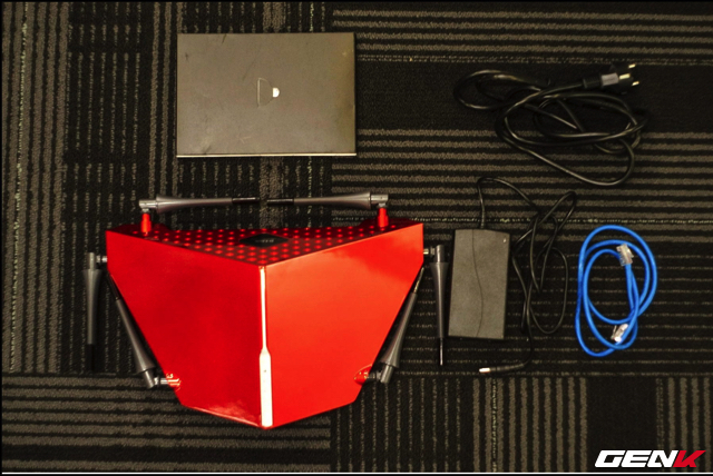 Router được trang bị CPU Broadcom 1GHz 2 nhân và ba băng tần sóng với tốc độ lý thuyết lên tới 3200 Mbps - 1300 Mbps cho 2 băng tần 5GHz và 600 Mbps cho băng tần 2.4GHz. Điều này dẫn đến việc sản phẩm có tới 6 ăng-ten có thể điều hướng, đem lại điểm nhấn cho thiết kế hầm hố nhưng đáng tiếc là chúng không thể tháo rời để thay thế được.