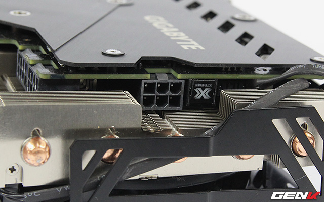 Bên cạnh đó, Gigabyte còn trang bị bổ sung 1 chân nguồn 6 pin cho game thủ nào thích OC khô máu. Với lực lượng chân nguồn như vậy, khả năng cấp điện cho GPU lên tới 375W - có lẽ phải ép xung với LN2, đặt điện áp và xung nhịp ở mức “giết hại” GPU mới lên nổi con số này.