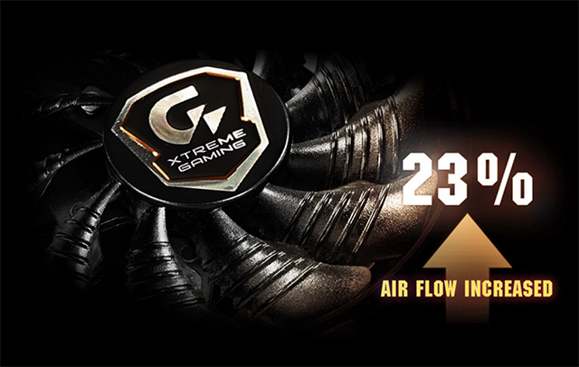 Quạt tản nhiệt của GTX 980 Ti Xtreme Gaming được thiết kế đặc biệt, chiều quay trái nghịch nhau, khuếch tán khí nóng về nhiều phía. Thiết kế này tuy tản nhiệt cho GPU tốt hơn nhưng cũng yêu cầu thùng máy phải đối lưu tốt, nếu không khí nóng sẽ lẩn quẩn bên trong.