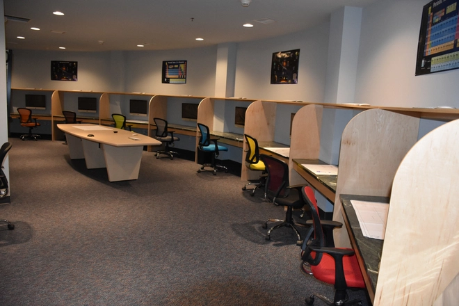Bên dưới boong-ke này cũng có những phòng học với máy vi tính và thư viện, mặc dù các kệ hiện vẫn còn đang trống sách. Sách sẽ được mang xuống và lấp đầy những chỗ trống này khi mọi người chuyển đến.