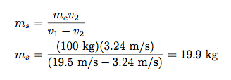 Trong đó dĩ nhiên ms là khối lượng chiếc khiên trong khi mc là khối lượng Captain America. Vậy từ những công thức này ta có thể suy ra công thức cuối cùng tính khối lượng chiếc khiên: