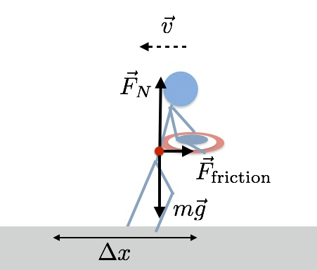 Ffriction là véc-tơ ma sát, x là trục di chuyển của đội trưởng Avengers tiến về phía trước..