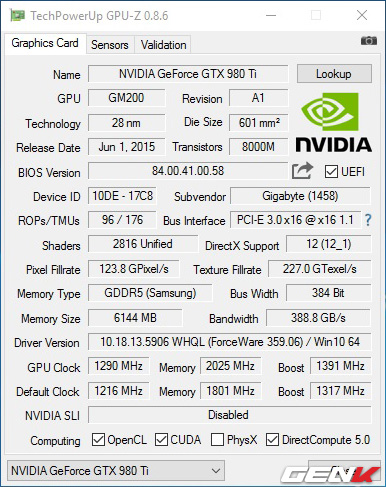Đắt xắt ra miếng! Trong số các chiếc GTX 980 Ti từng qua tay (số lượng không dưới 5), bản Xtreme Gaming này của Gigabyte là sản phẩm đẹp nhất, mạnh nhất và ấn tượng nhất. Xung nhịp ép sẵn rất cao giúp Xtreme Gaming mạnh hơn tới 13,4% so với bản chuẩn, còn khi ép xung lên đã vượt qua cả GTX 970 SLI.