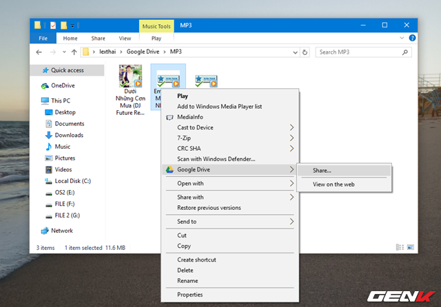 Chia sẻ nhanh thư mục hoặc tập tin từ Google Drive trên máy tính Windows