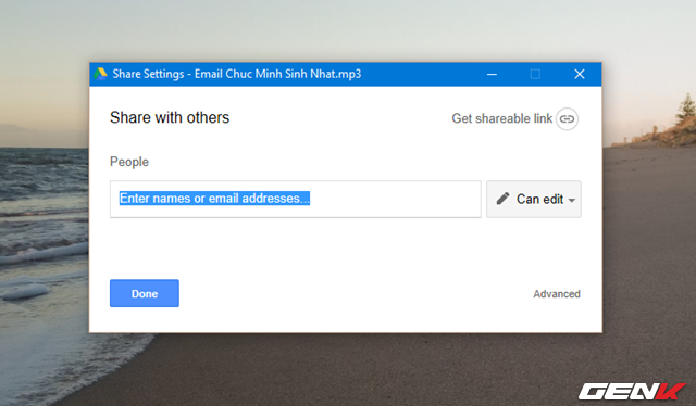 Hộp thoại tùy chọn chia sẻ sẽ xuất hiện. Tại đây bạn có thể thêm tên, email và tùy chọn cấp phép cho người được chia sẻ thao tác với dữ liệu.