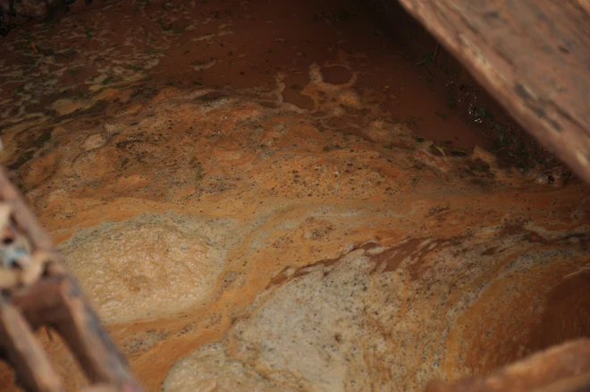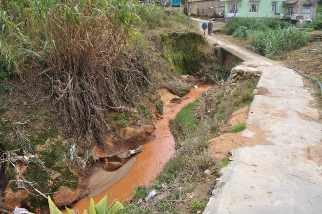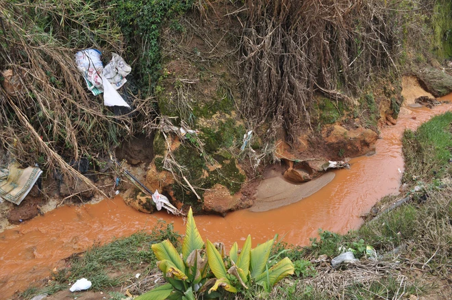 Dòng nước đục ngầu kèm theo rác thải làm ô nhiễm nguồn nước trầm trọng.