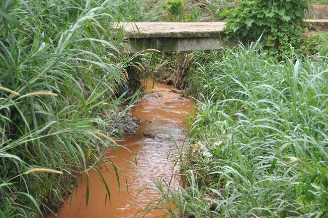 Con suối đục ngầu chảy len lỏi giữa vườn tược của hàng trăm hộ dân