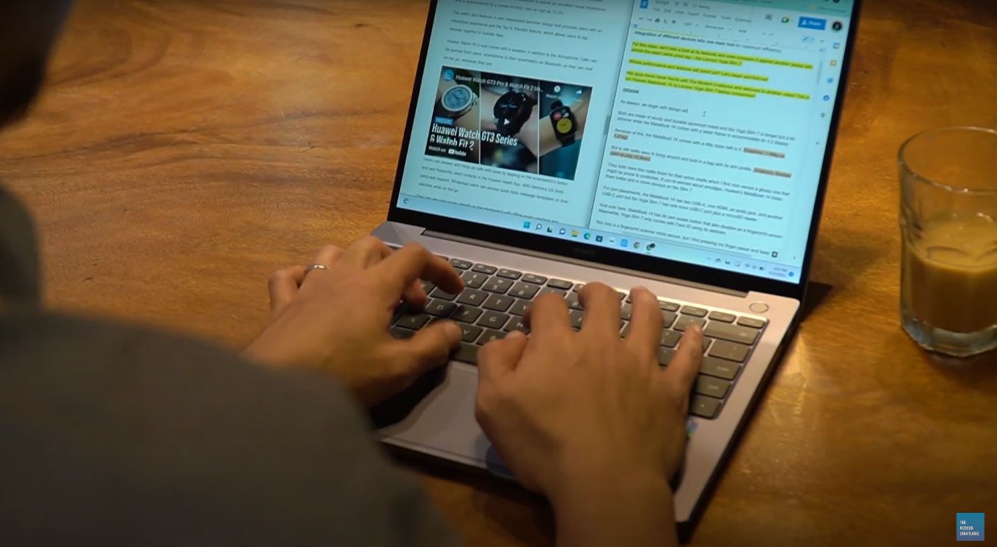 Không những vậy, ngay cả những người dùng thông thường cũng được hưởng lợi từ màn hình của Matebook 14 (2022). Theo Modern Creatures cho biết, với tỉ lệ màn - thân máy 90%, các tác vụ đơn giản như lướt web, đọc báo, gõ văn bản bỗng trở nên dễ chịu hơn, thoáng mắt hơn mà không cần cuộn trang quá nhiều. Khi sử dụng các phần mềm như Photoshop hay Premiere Pro, không gian làm việc của họ cũng trở nên rộng rãi và thoải mái hơn.