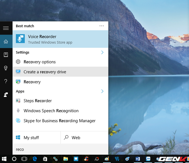 Trước tiên bạn hãy tìm một chiếc máy tính nào đó đang chạy Windows 10. Sau đó cắm USB vào và truy cập vào tính năng Recovery Drive của Windows 10 bằng cách nhập từ khóa “recovery” vào ô tìm kiếm và nhấn vào kết quả Create A Recovery Drive.