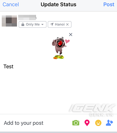 Sau khi chọn stickers, bạn có thể viết trạng thái như thông thường và đăng bài viết.
