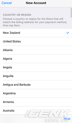 Bước 4: Ở phần Quốc Gia, chọn: New Zealand. Ấn "Next" để tiếp tục.