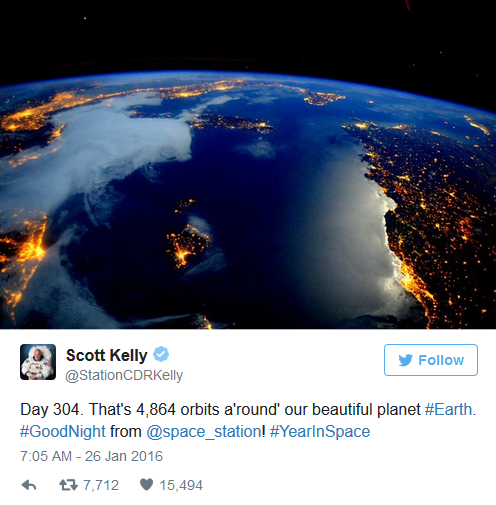 Cho tới nay, 543 người đã từng ở trên quỹ đạo quanh Trái đất. Nhưng khó có ai đã từng ở lại lâu được như Phi hành gia Scott Kelly của NASA.