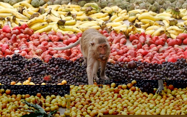 Khỉ ăn hoa quả nhưng chúng không thể tìm thấy chuối giống như cách con người mua từ siêu thị. Ngoài ra, chúng cũng ăn lá, hoa, hạt và côn trùng trong tự nhiên.