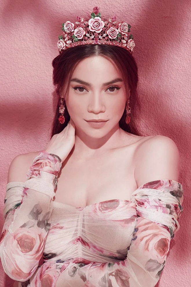 Giọng ca "Cả Một Trời Thương Nhớ" phục sức bằng chiếc vương miện hoa hồng và đôi khuyên tai kiêu kỳ.