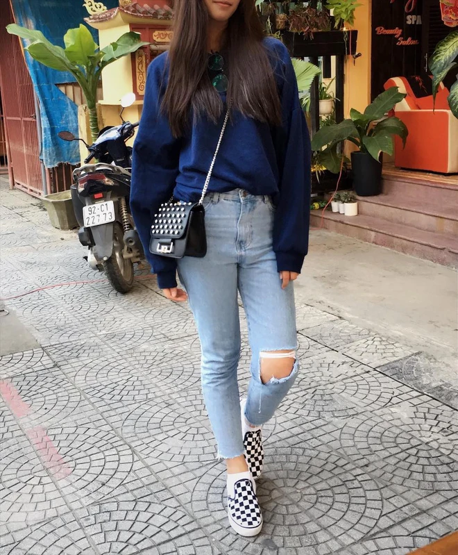 Bên cạnh short jeans thì tủ quần jeans của Tiểu Vy cũng đa dạng không kém, cô có khá nhiều jeans rách, skinny jeans và đâu đó vài chiếc jeans dáng rộng cho đúng với hot trend những năm gần đây. Nhưng riêng về kiểu quần này, cô chỉ mua quần màu xanh sáng, chứ không mua nhiều màu như khi mua short jeans.