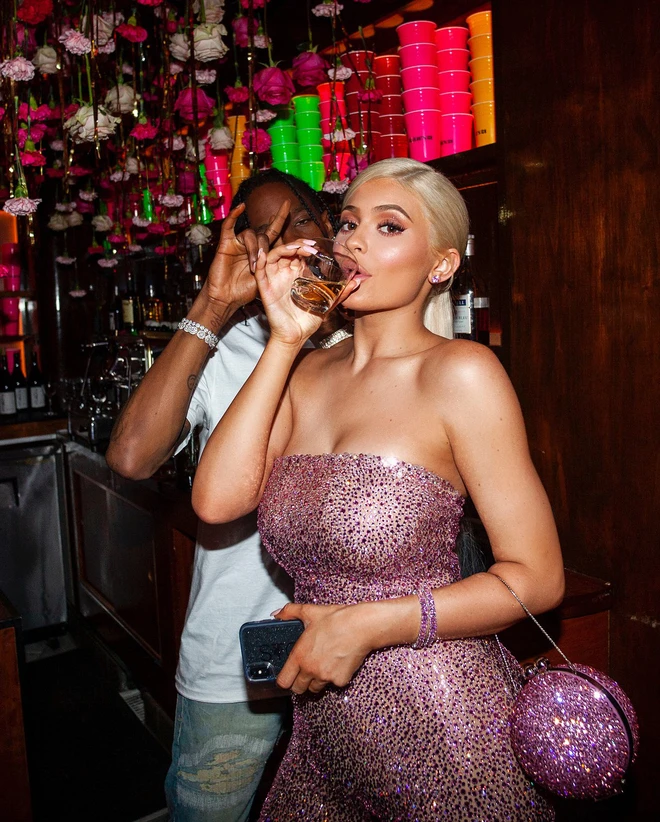 Mừng sinh nhật 21 tuổi, Kylie Jenner đã đặt riêng một bộ jumpsuit đính 70.000 viên pha lê Swarovski màu hồng từ thương hiệu LaBourjoisie.
