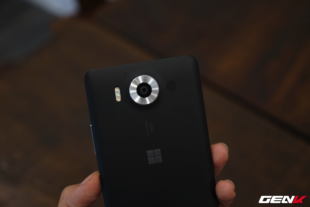 Ở mặt lưng là nơi Microsoft đặt cụm camera PureView cho Lumia 950. Dựa trên thông số, camera này không có nhiều thay đổi so với camera trên Lumia 930, nó vẫn sử dụng thấu kính Carl Zeiss và có độ phân giải 20 MP. Sự thay đổi nằm ở kích thước cảm biến 1/2,4 inch lớn hơn một ít và cụm 3 đèn Flash LED.