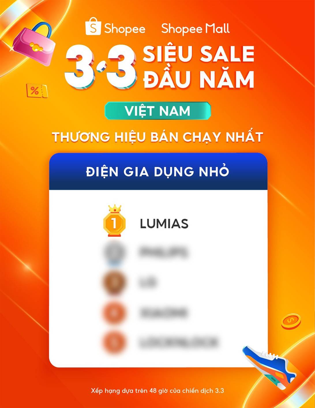 Các chiến dịch siêu sale đầu năm thường được xem như thước đo quan trọng phản ánh sức mua của thị trường thương mại điện tử. Trong đợt khuyến mại Shopee 3.3 vừa qua, thương hiệu gia dụng Lumias ghi nhận kết quả đáng chú ý khi đạt vị trí dẫn đầu ngành điện gia dụng nhỏ trên Shopee Mall, thu hút sự quan tâm lớn từ người tiêu dùng.