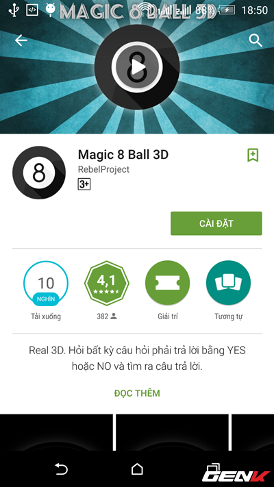 Có thể xem Magic 8-ball là một ứng dụng khá thú vị, nó sẽ giúp bạn giải đáp bất kỳ câu hỏi nào mà bạn đang buâng khuâng. Và nó cũng được xem là 1 mạng xã hội thu nhỏ khi cho phép bạn tương tác với những người dùng khác thông qua việc giải đáp các câu hỏi từ mọi người và ngược lại.