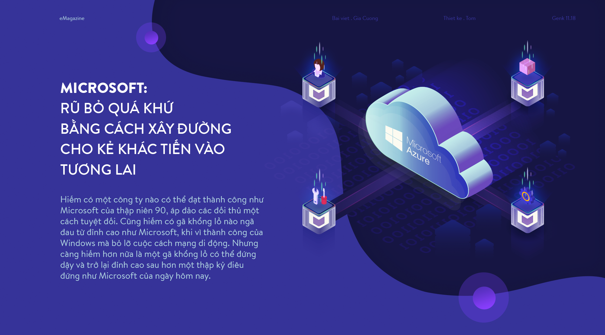 Nhưng chính những kẻ hiểu rõ sức mạnh của đám mây Microsoft mới là những kẻ sẽ kiến tạo nên thế giới số của thời đại mới. Khi những thiết bị cá nhân đều đã chạm đến ngưỡng sáng tạo, khi thị trường phần cứng đã bão hòa, con đường số hóa duy nhất sẽ không còn tập trung vào 1 vài sản phẩm, 1 vài công ty lớn. Những sáng tạo từ nay sẽ buộc phải phân tán về Vạn Vật, và hàng triệu doanh nghiệp trên thế giới sẽ tận dụng sức mạnh đám mây để "tái hình dung" lại tất cả những tác vụ quen thuộc, giúp cuộc sống của loài người trở nên dễ dàng hơn.