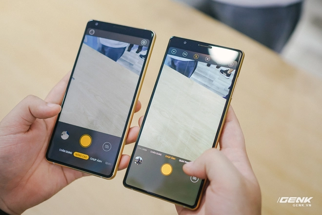 Phần viền màn hình phía trên của Bphone B86 được làm mỏng hơn 1 chút so với Bphone 3, sự khác biệt này khá khó để nhận thấy nếu không đặt hai máy cạnh nhau
