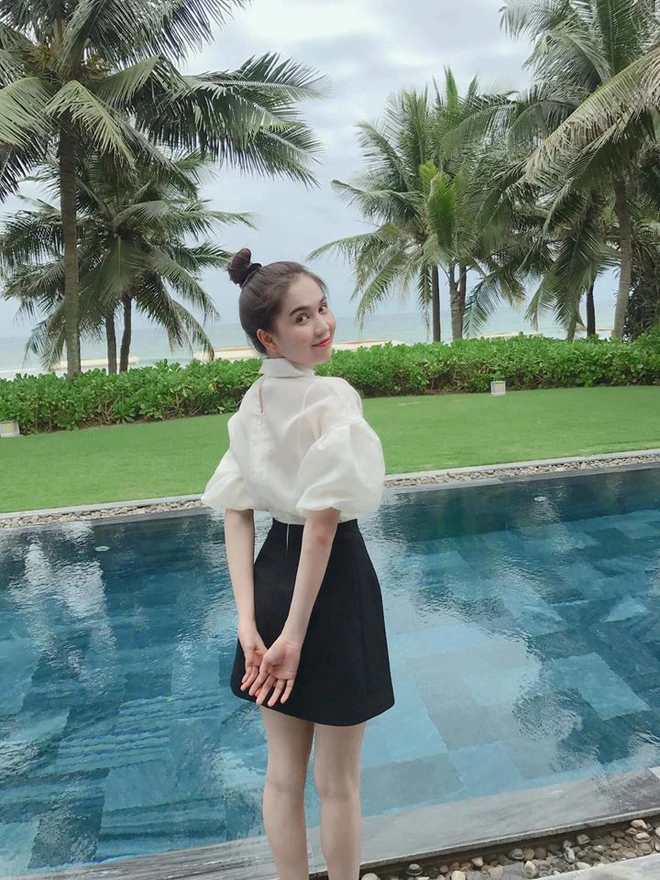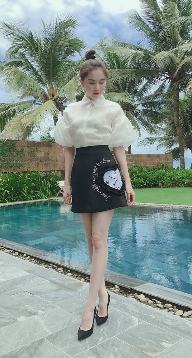 Tuy hơn Ngọc Trinh đến tận 10 tuổi nhưng phải công nhận rằng, bộ cánh này giúp người đẹp trông tươi trẻ lí lắc chẳng kém gì đàn em.