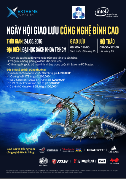 Tiếp nối chuỗi các hoạt động của Extreme PC Master, Ngày Hội Giao Lưu Công Nghệ Đỉnh Cao sẽ được tổ chức tại Đại học Bách Khoa HCM vào ngày 24/05/2016 tới đây.