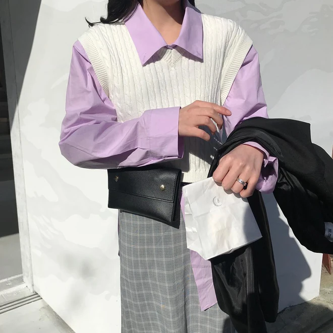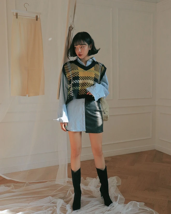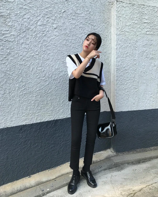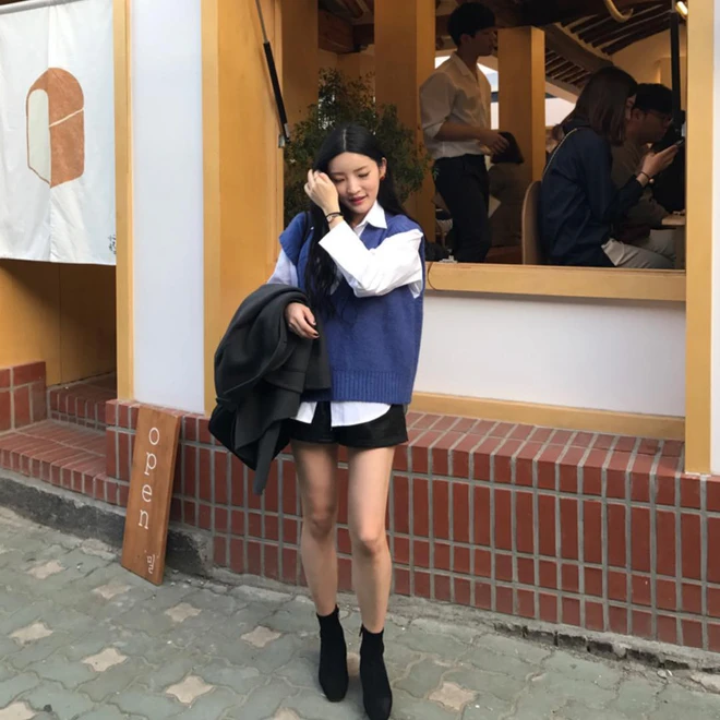 Nếu để list ra những item hợp nhất để mặc ngày trời mới trở gió, tức là chưa quá lạnh thì chắc, áo gile len sẽ nằm luôn trong top 3, bên cạnh áo gió và áo cardigan. Có khả năng giữ ấm vừa phải, không quá dày cũng không quá mỏng khiến bạn dễ cảm lạnh, hơn nữa lại có phom dáng khá trendy là những ưu điểm nổi bật nhất của loại áo này. Nếu chưa sắm một em cho mùa thu đông năm nay thì bạn nên cân nhắc đi, đây chính xác đang là item làm mưa làm gió ở xứ Hàn đấy.
