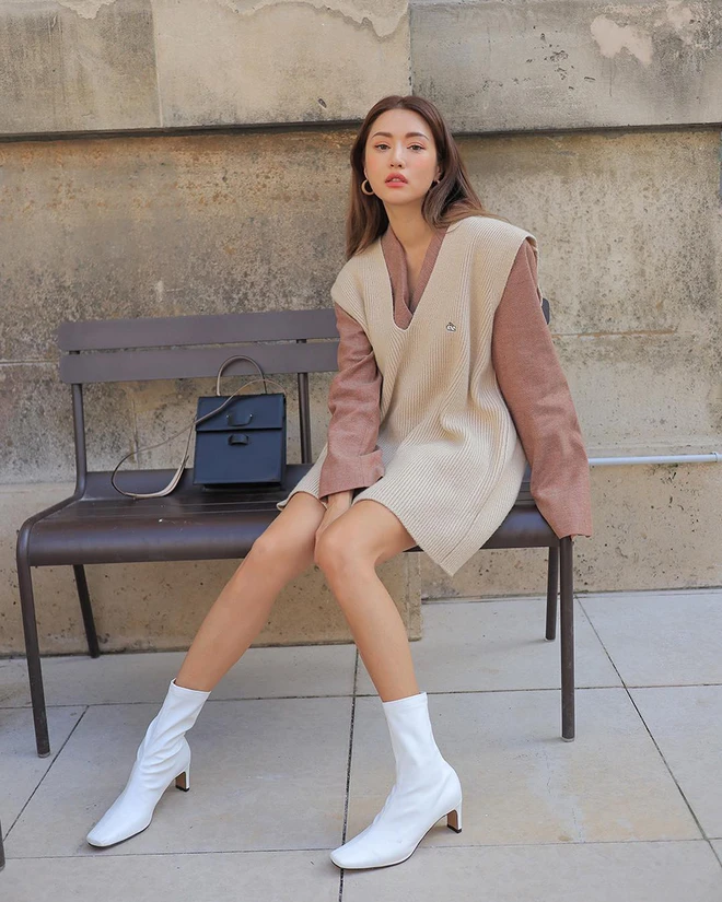 Có thể thấy, nhiều người cũng thích mix gile len với áo sơmi rộng dài theo style giấu quần kinh điển rồi đi ankle boot (mẫu boot hot hit nhất năm nay). Lưu ý, nếu áo của bạn chưa đủ dài để cover thì cứ mix thêm quần short ống rộng nhé. An toàn vẫn là trên hết.