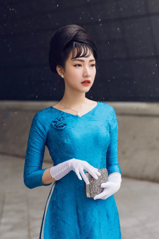 Oái oăm ở chỗ, mái tóc búi tuy mang đến diện mạo thanh lịch nhưng lại để lộ khuôn mặt tròn vành vạnh của "Nàng thơ xứ Huế".