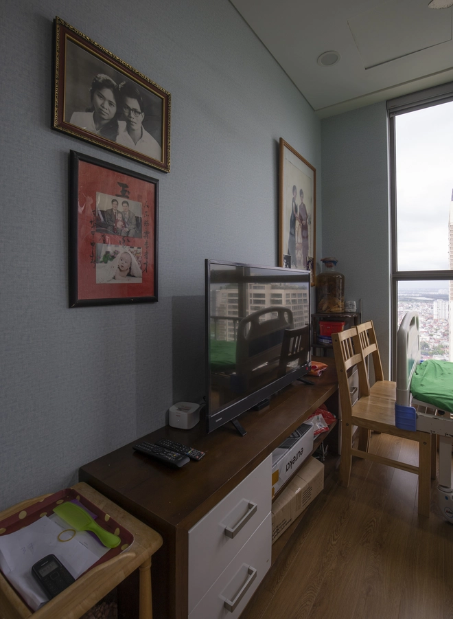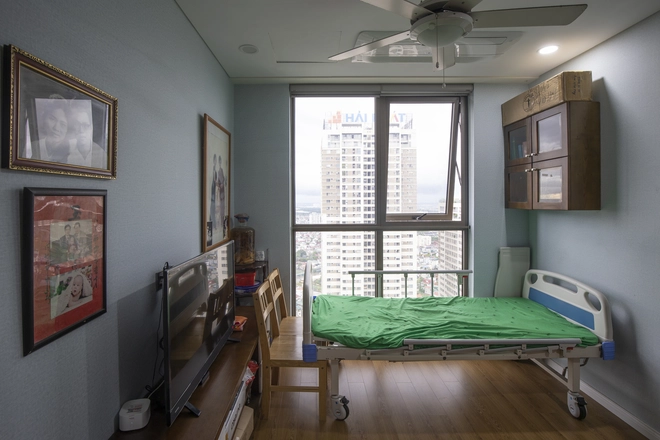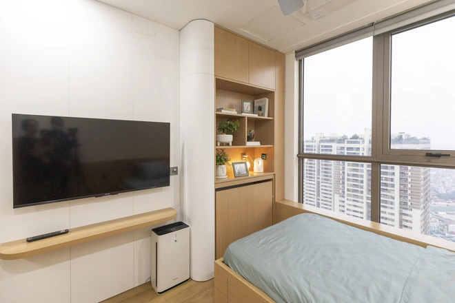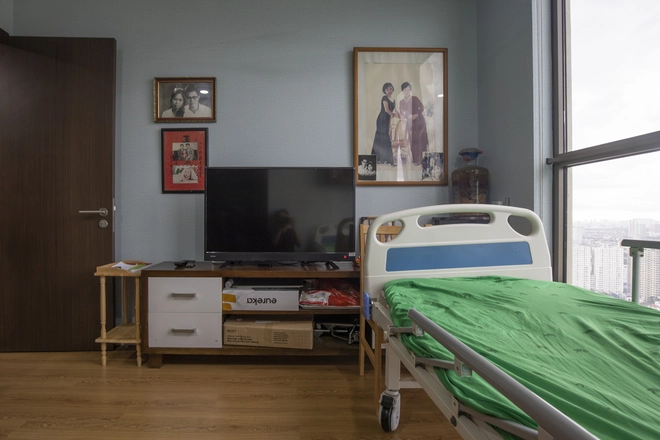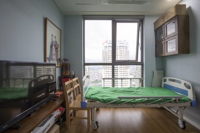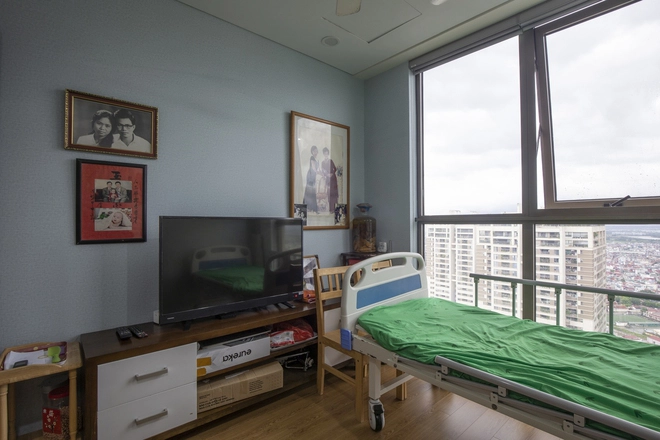 Công năng của căn phòng mới đã được tối đa hoá với 2 giường cho ông và cô Chung. Bên cạnh đó, những chi tiết nhỏ khác như tivi cũng đã được kê lại gần giường của cô hơn. Trong phòng cũng có không gian trống để thoải mái đi lại.