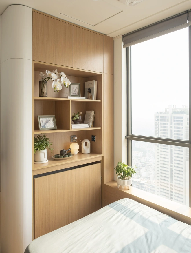 Đây là 1 bài toán khá khó khi căn phòng nhỏ nhưng vẫn phải có nơi ngủ đủ dành cho 2 người. Cả 2 team Concept Warehouse - KTS Nguyễn Cẩm Vân và Flexhome - KTS Phan Hùng đã đưa ra những phương án thiết kế tối đa hoá công năng trong căn phòng nhỏ. Sau một thời gian suy nghĩ, anh Bách đã lựa chọn KTS Phan Hùng cùng team Flexhome vì thiết kế mang cảm giác đơn giản và gọn nhẹ.
