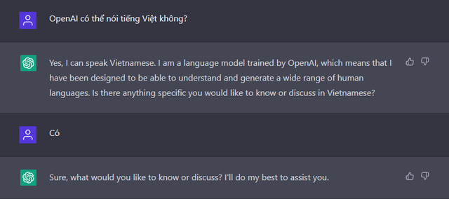 Bạn có thể lập tức nhận thấy khả năng sử dụng ngôn ngữ tiếng Việt của ChatGPT vẫn còn khá ngây ngô. Tuy nhiên, mô hình ngôn ngữ này sẽ tự hoàn thiện mình theo thời gian và trau chuốt ngôn từ của mình cho “giống người” hơn, cũng giống như cách con người trau dồi khả năng sử dụng ngôn ngữ qua quá trình thực hành.