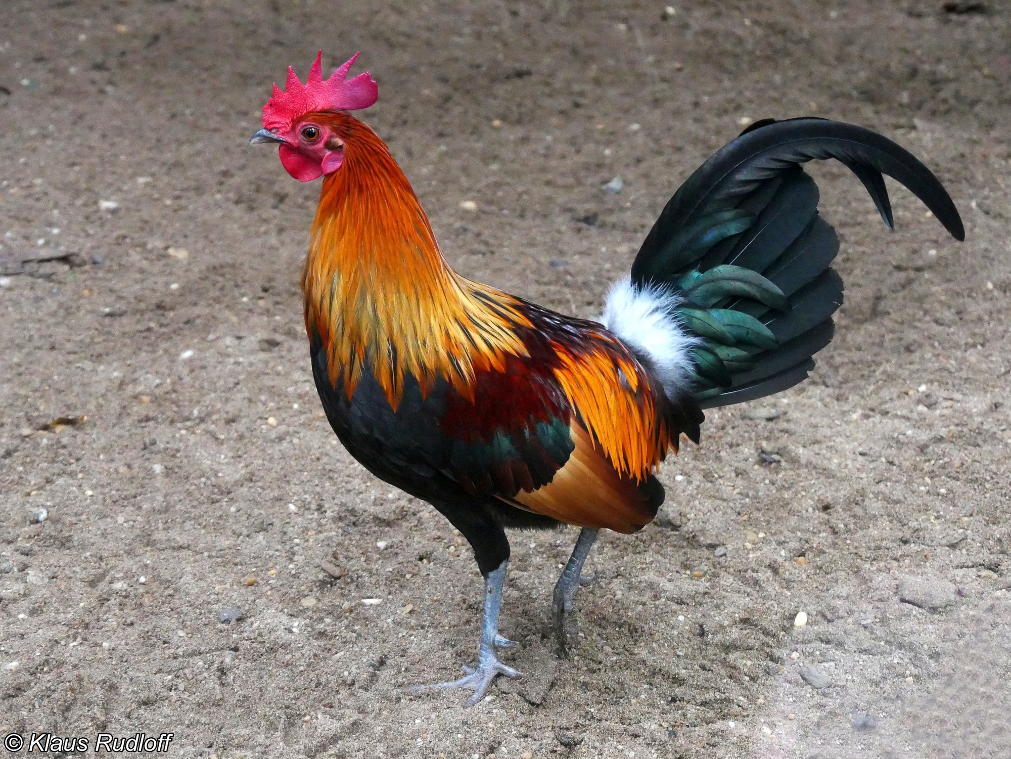 Trong ảnh dưới, lần lượt từ trái sang phải là các phân loài gà rừng lông đỏ: Gallus gallus jabouillei - gà rừng Việt Nam, Gallus gallus bankiva - gà rừng Java, Gallus gallus gallus - gà rừng Đông Dương, Gallus gallus spadiceus - gà rừng Myanma, Gallus gallus murghi - gà rừng Ấn Độ, và gà nhà - Gallus gallus domesticus.