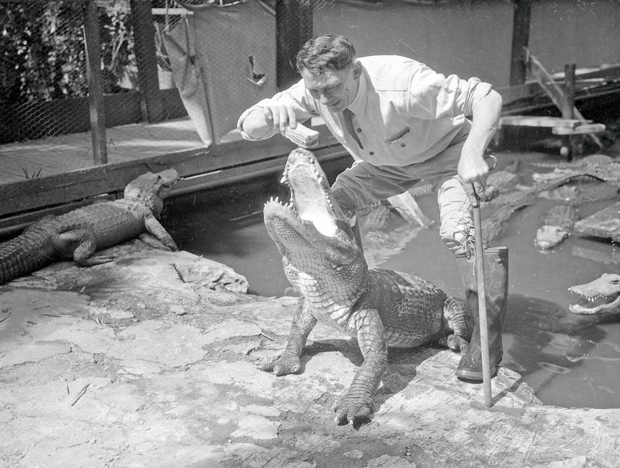 Những bức ảnh hiếm hoi về trại cá sấu những năm 1920 tại California, nơi trẻ em có thể cưỡi và chơi với cá sấu!