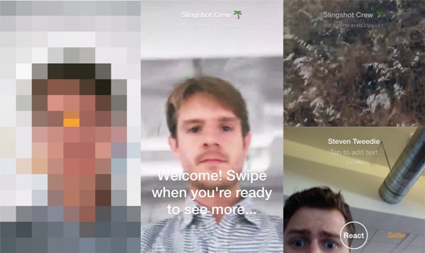 Ngay sau khi ứng dụng Facebook Poke bị khai tử, Facebook lại bắt tay vào ứng dụng nhắn tin Slingshot, với tính năng chia sẻ hình ảnh tự xóa giống như Snapchat. Và ứng dụng này có vẻ như thành công hơn Facebook Poke, tuy nhiên nó vẫn không được nhiều người biết đến. Thậm chí Slingshot còn không có mặt trong top 1000 ứng dụng phổ biến nhất trên cả Android và iPhone.