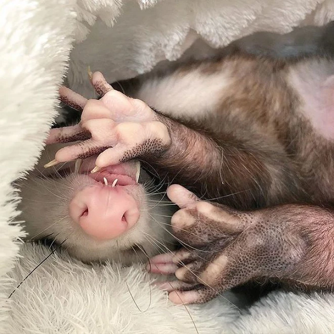 "Những con Opossums của chúng tôi là động vật gặp nạn, chúng sẽ sớm được thả về với tự nhiên khi đủ sức khỏe hoặc sẽ được giữ lại làm thú cưng nếu như chúng không thể tự sống sót bên ngoài tự nhiên. Hai con của tôi bị mất đuôi và đó là lý do tại sao chúng không thể tự sinh tồn ở bên ngoài thiên nhiên hoang dã", chủ nhân của chúng, Ally Burgueires chi sẻ.