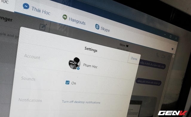 Nhưng điểm mới của Messenger for Desktop là khả năng tùy chỉnh lại giao diện với 3 tùy chọn nền mặc định, cùng với một số các lựa chọn thiết lập khác mà bạn có thể khám phá sau.