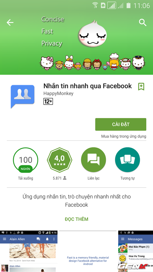 Được cung cấp miễn phí cho nền tảng Android, Lite Messenger yêu cầu rất nhiều các quyền trên điện thoại Android của bạn để ứng dụng có thể triển khai tốt các tính năng mà nó mang lại. Mặc dù nếu xét về giao diện thì nó thua xa so với ứng dụng chính chủ từ Facebook.